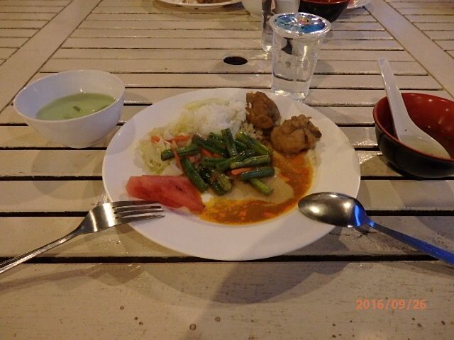 一度、出発地点に戻って夕食。カレー、炒めもの等がありましたが