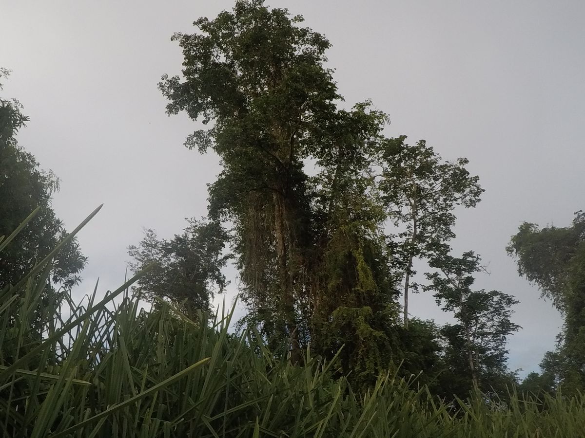 サルは、ヤシの木ではなく、葉っぱのある木によくいました。