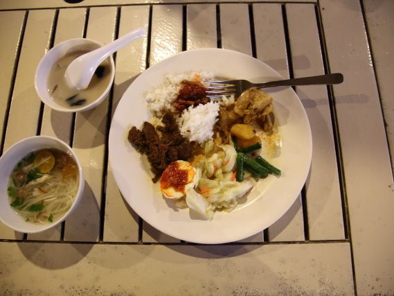 軽食は、ナシゴレンかミーゴレンの選択。鶏肉や目玉焼きなども付いており、一食として十分なボリュームです。軽食と言う表現ではなくメニューをはっきりと書いたほうが良いと思います。