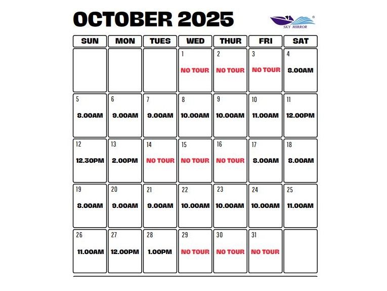 人気のスカイミラーツアー。「天空の鏡」の名の通り、水面が鏡のように反射し、ご自身の姿が”水面鏡”に映った写真が撮れる話題のインスタ映えスポットへご案内します。ホテルからの送迎付きで、行き帰りも安心です。