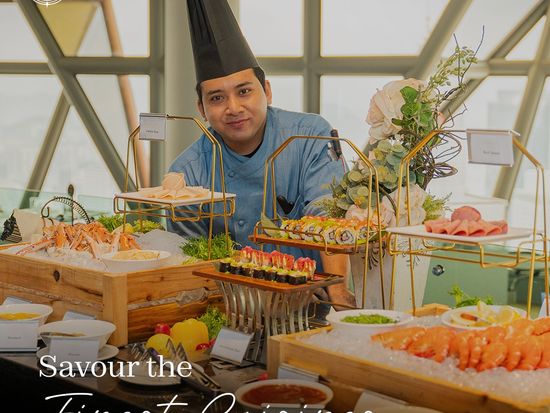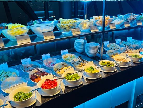 回転式のレストランなので、座ったままクアラルンプールの美しい景色を一望できます。贅沢なディナービュッフェとともに、360度の絶景をお楽しみください。