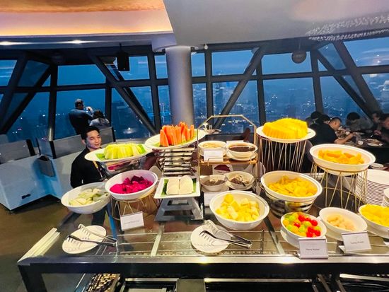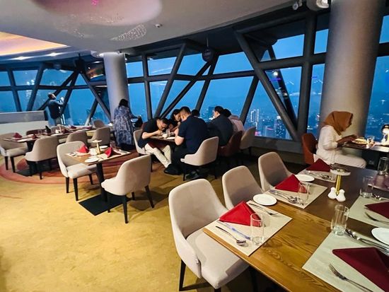 回転式のレストランなので、座ったままクアラルンプールの美しい景色を一望できます。贅沢なディナービュッフェとともに、360度の絶景をお楽しみください。