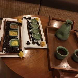 場所がわかりにくいと口コミにあったのですが、ルネッサンスホテルに着くと、ドアボーイが親切に行き方を教えてくれました。ホテル内のスパだけあって外観も落ち着いたものでした。中に入ると、お茶をいただきながら、4種類のオイルから1つチョイスします。(写真の湯飲みの向こう側がオイルです。)マッサージはとても気持ちよく、眠ってしましそうになりました。背中の筋肉で凝ったところがあったのですが、何も言わなくてもそこを丁寧に揉みほぐしてくれました。触れただけで筋肉の状態が分かるのかもしれません。とてもリラックスできたスパでした。