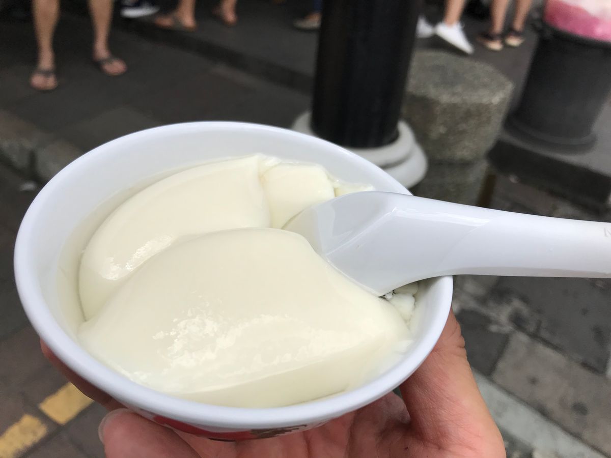 続いてローカルフードの豆乳豆腐の様なものも。こちらも地元の超人気店で食後のデザートとしても甘くておいしかったです。