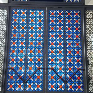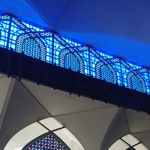いよいよモスク見学です、とても広く高く模様も綺麗です、ステンドグラスあんなにあるとは意外で想像以上でした。陽の光でステンドグラスは幻想的で実際に行ってみないと味わえない感動です。しかしガイドさんは英語のみで、余り良く理解できなかったのが残念です。ここでは、無料の水を帰りに頂きました。