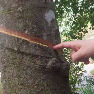 果樹園ではガイドさんが取ってくれたランブータンを、皆で椅子に座って食べたり、ゴムの木を見せてもらったり。