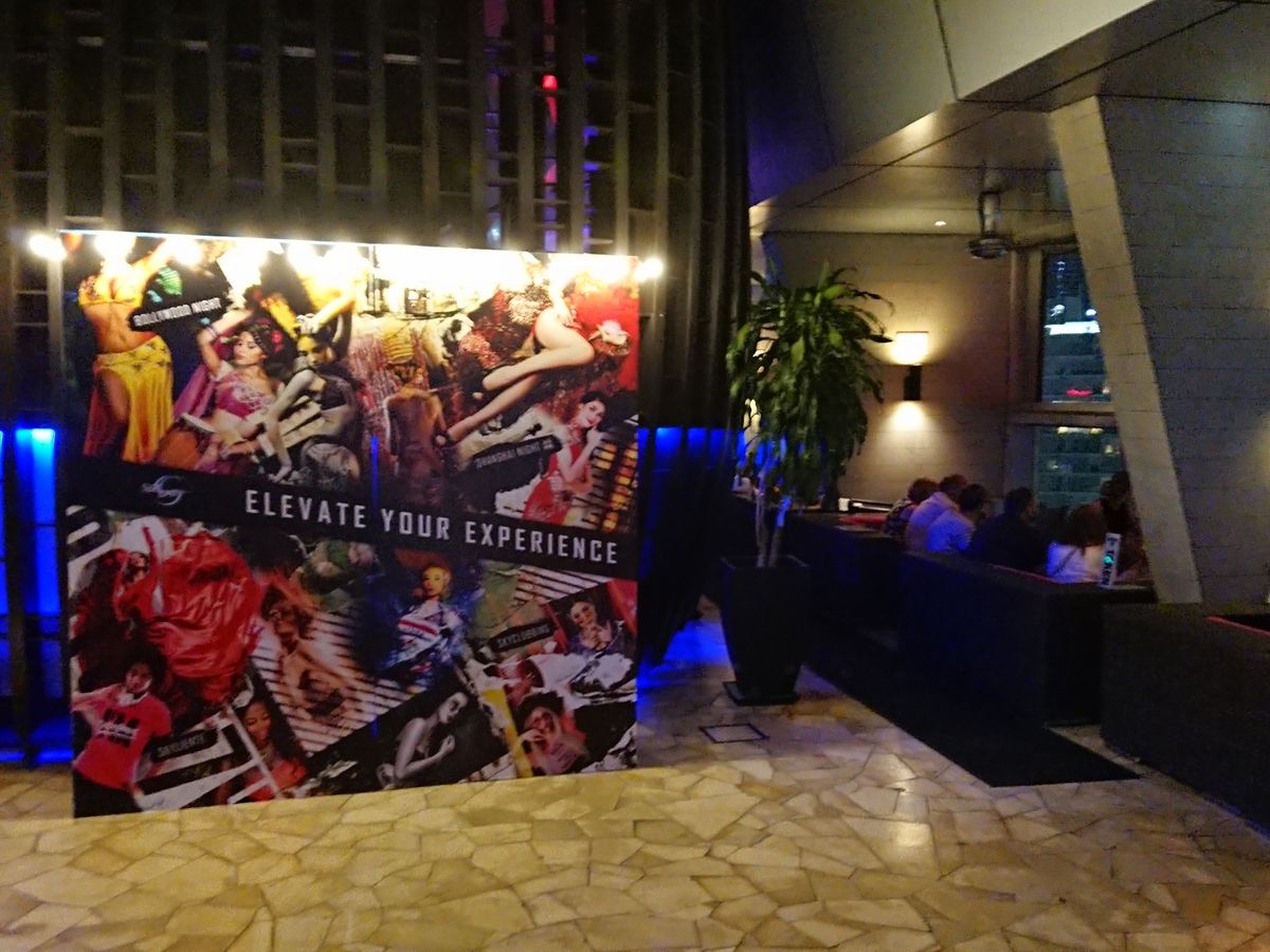 日本と違って日没が遅いと聞いていたので20時で予約しました。滞在先のホテルからGrabでトレーダースホテルへ移動。渋滞をうまく避けてくれたため30分弱前には到着しました。ホテル入口で簡単な手荷物チェックを受けてからエレベーターで33Fへ。スカイバーの受付でバウチャーを渡してから入店。店内は音楽が大きめの音量でかかっており、少しクラブ感がありました(笑)