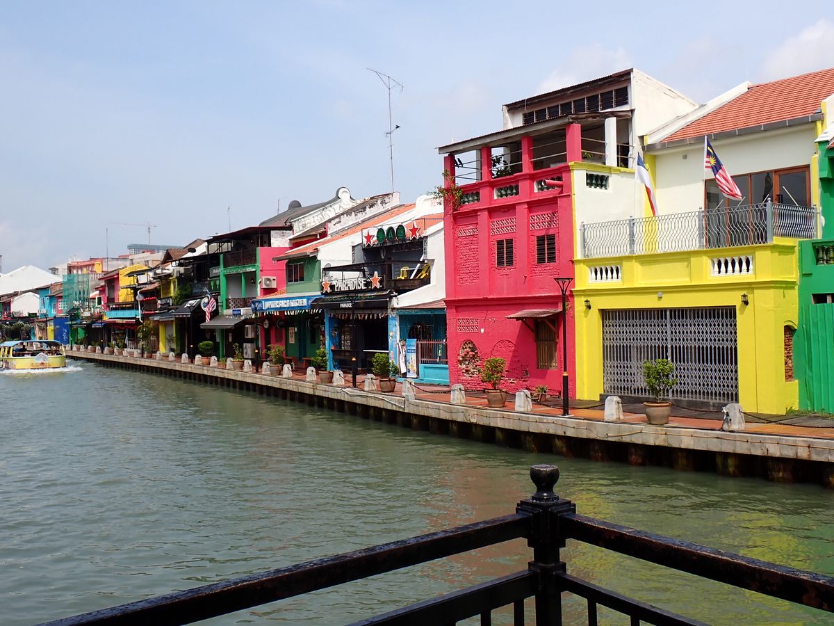 世界遺産のマラッカ付近に近づくと、カラフルな建物が増えて来ました。予定表では繁華街の散策からでしたが、ガイドさんはリバークルーズから案内してくれたので、街の雰囲気を良く感じられました。