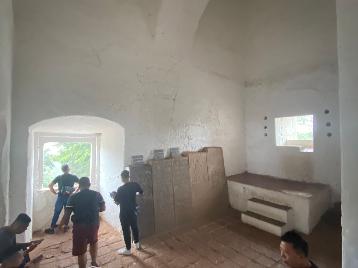 水上モスクを見学した時は太陽が出ていたのですが、いざ、オランダ広場からセントポール教会を歩いて見学しようというときになって、土砂降りの雨になってしまいました。傘があっても、かなり強い風と雨でみんなびしょ濡れに。セントポール教会は同じように雨宿りする観光客と、工事を中断して雨宿りをする現地の方で混み合ってました。少し雨足が弱まったのを見てバスに戻りましたが、教会の雰囲気を味わったり、ザビエルの埋葬場所をゆっくり見たりする余裕がなかったのは残念です。