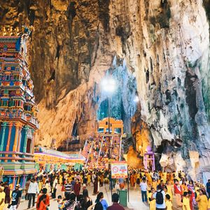クアラルンプール郊外にあるヒンドゥー教の聖地、バトゥ(バツー)洞窟。大鍾乳洞の中には数々のヒンドゥー教の神様が祀られています。天井まで100メートルもある洞窟内の寺院には聖者スブラマニアンがおり、ヒンドゥー美術の幻想的な世界が広がっています。ヒンドゥー教の大祭タイプーサムになると、信者は体のあちこちに針などを刺して大勢の人が参拝に訪れるので必見! クアラルンプール市内のインド人街を訪れた後は、ぜひ足を延ばしてみたいスポットです。