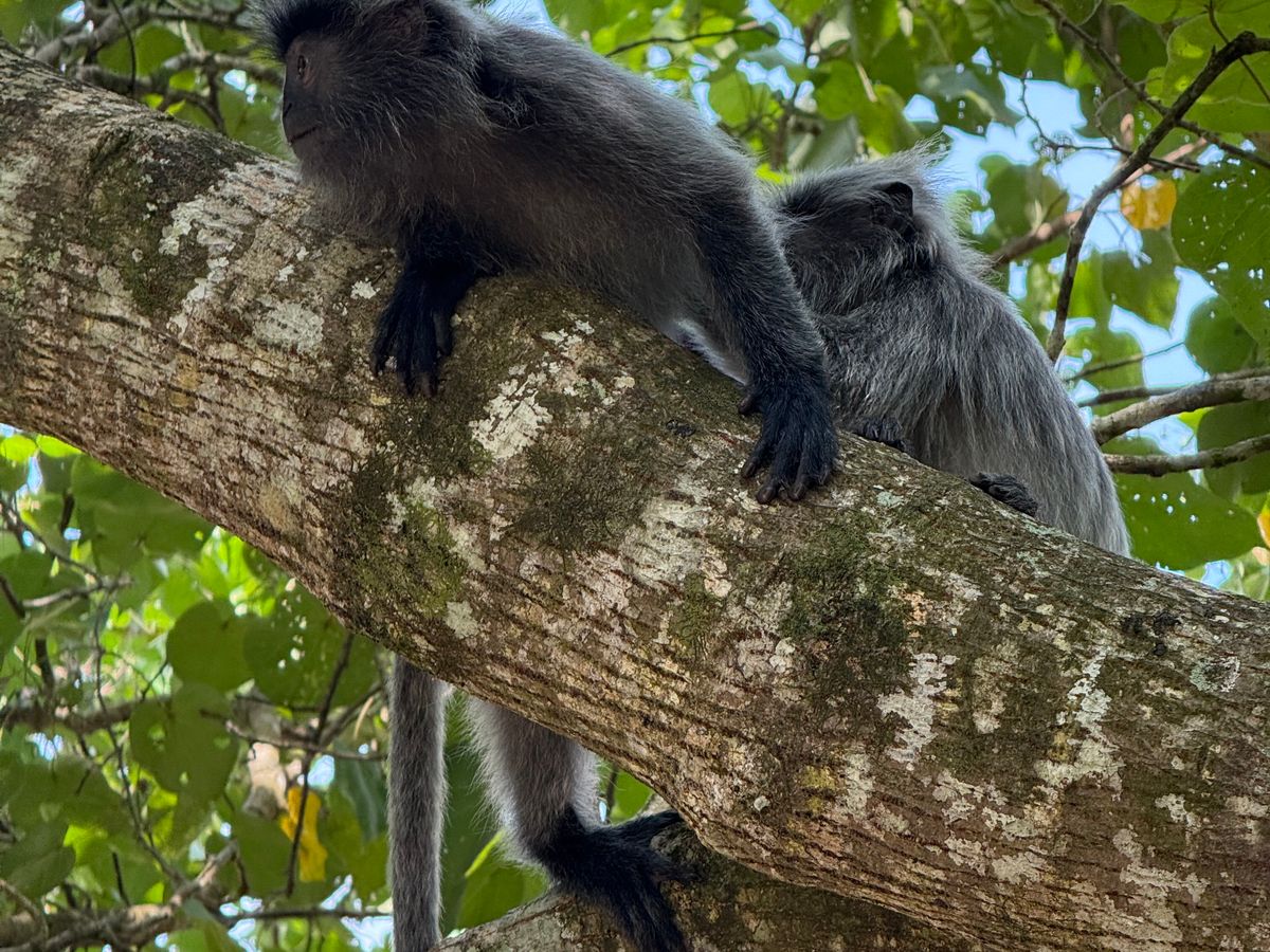テングザルもすぐに出てくれて、シルバーリーフモンキーは、少しシャイなのですが、良いタイミングで出てきましたね。
