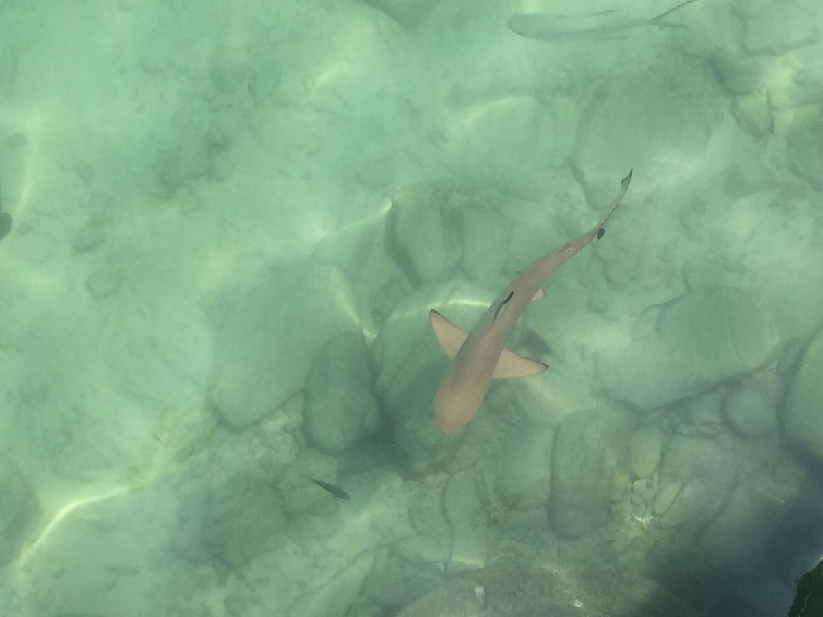 パンとかを持ってシュノーケルをやっている人がたくさんいたので、サメも浅瀬にたくさん来てました。