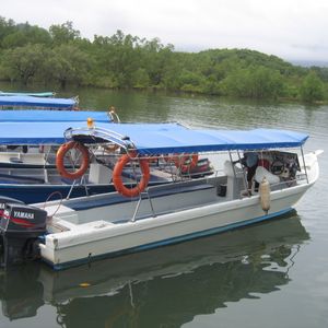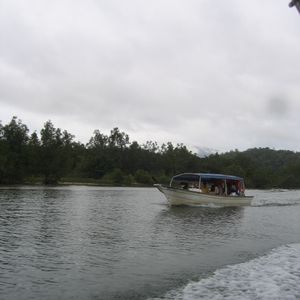 7人で1つのモーターボート?に乗って参加。(他にもう1つのボートあり)日本人だけのツアーでした。鳥、さる、とかげ、こうもり、マングローブについてガイドの人がたくさん紹介してくれました。特に動物については、見れるまで戻ってくれたり、と臨機応変に対応してくれた気がします。おかげさまで様々な動物を見ることができました。それにしても、植物や動物についてたくさんの話をしてくれてありがたいガイドさんだった、と思います。(へびは耳はないけど、とかげにはある・・・こうもりは人を襲うことはない、など)途中スコールが追いかけてきた場面も見れてとても珍しい体験もできましたよ!雨にぬれる前にかっぱも準備してくれていたので、よかったです。(それでもボートの中に水が入ってきましたが)