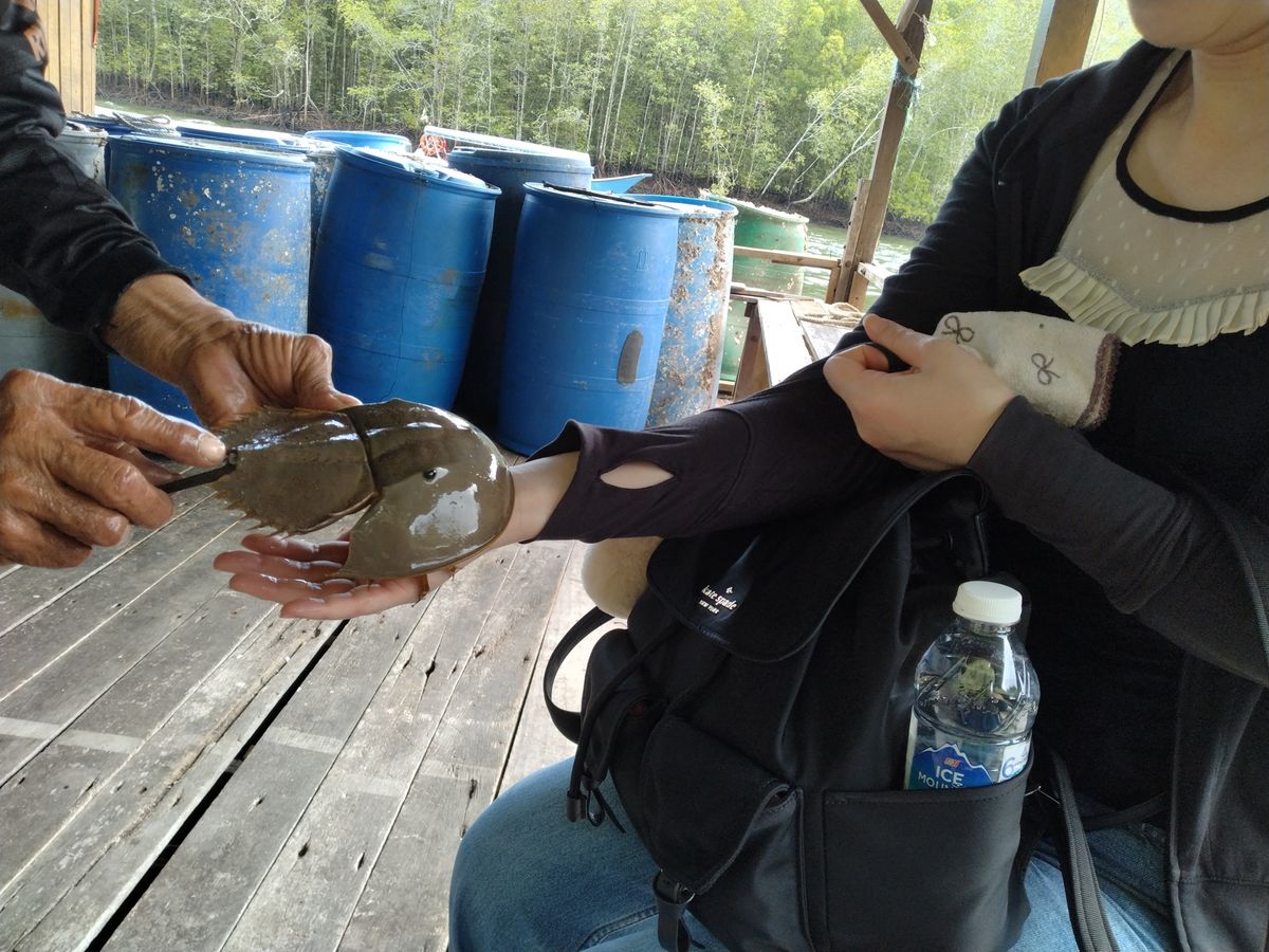 コウモリの洞窟やカニ取り体験、エイとカブトガニのふれあい体験、船の上で魚釣り、ワシウォッチング、マングローブの中をクルージングなど盛りだくさんでした!