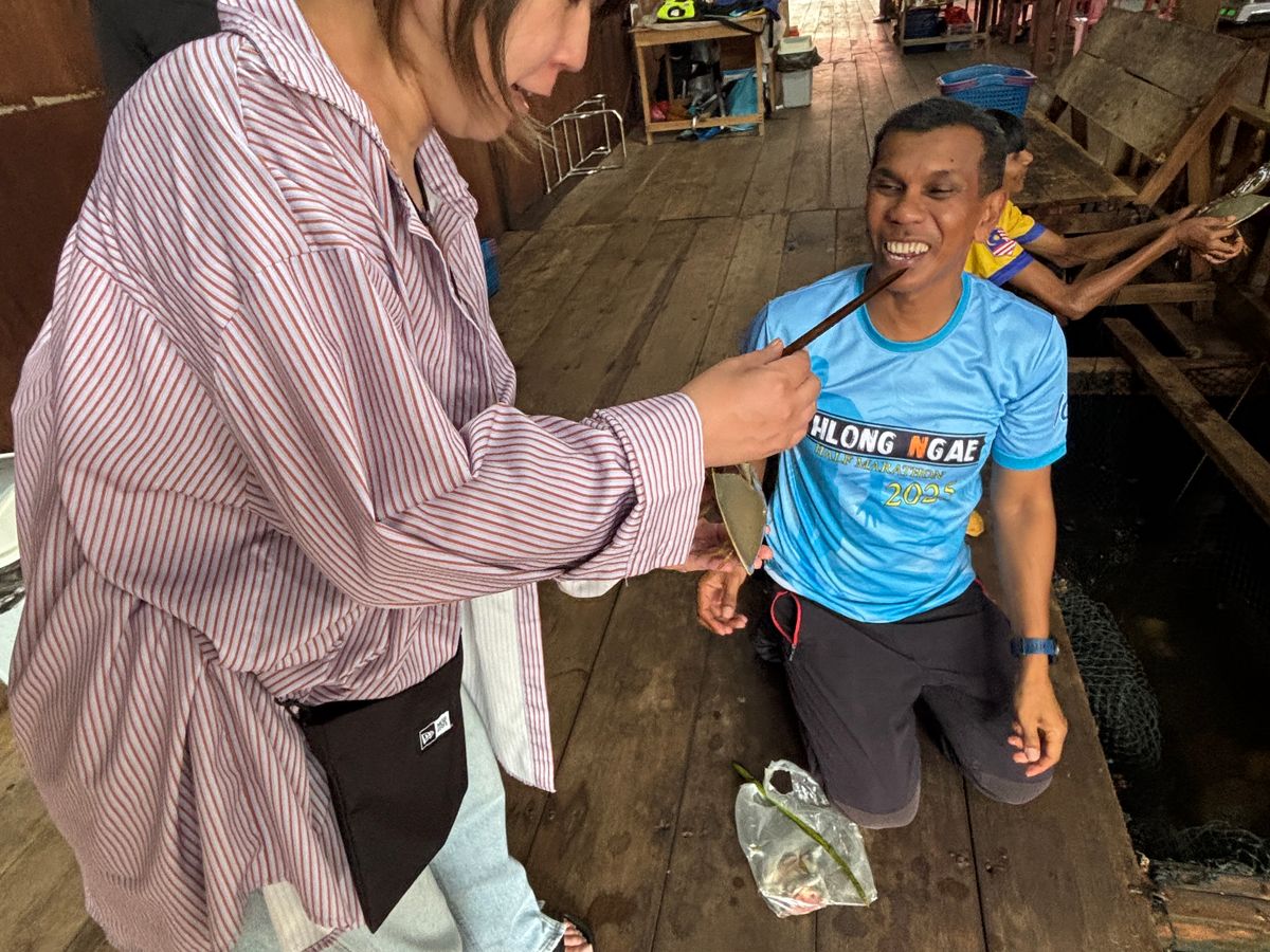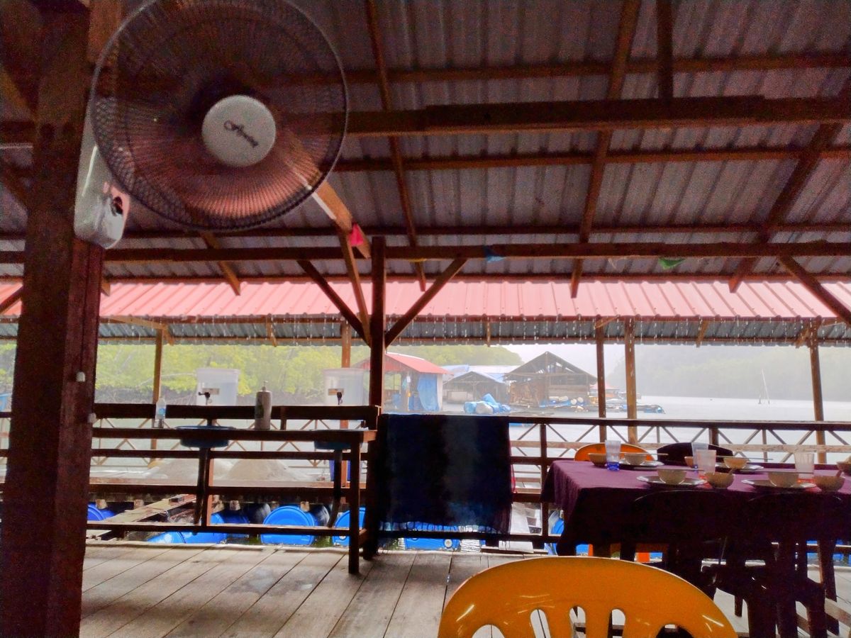 送迎車により船着場まで移動し、船に乗って鍾乳洞、洞窟でコウモリを見学→蟹の罠仕掛け→鷹に餌付け→釣り→水上レストランで昼食🍽️養殖場見学🐟