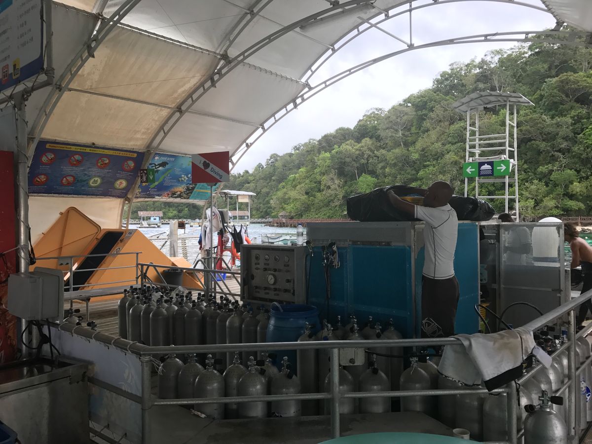 大きな船でパヤール島に渡ると、浮島に船がつき、ボートダイブは、そこから小さな船に乗り換えて行きました。
