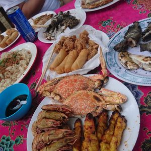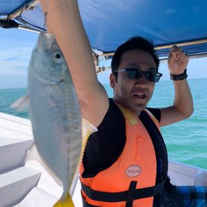 生憎のお天気の中の出発。土砂ぶりです。残念ながらお名前伺えてなかったのですが、日本語ガイドさんです。ラッキーなことに他のツアー客はおらず貸切でした。鷲の餌付けを見学したり、手釣り体験をしました。本当は湖にも行く予定だったのですが、上陸した島から更に3,40分歩かねばならないと聞き、降り頻る雨でカラダが冷え切っていたので、ガイドさんと相談し取りやめにしていただきました。海に入り暖を取っていたのですが、海に入っている方が温かくて上がるのは酷でした(笑)湖への散策を取りやめた分、海釣りの時間を増やしていただきました。船長さんとガイドさんのコミュニケーションが良く、海釣りのポイントを押さえていて、次から次へと面白いように魚が釣れました。ピクピクと釣り糸に伝わってくる魚が餌をつついている感覚、どこで糸を引くのかドキドキワクワク体験でした。ハタ4種、イトヨリ等盛り沢山でした。釣った魚は小さいものは海へ返し、他はランチになりました。ランチもビーフンや現地では人気のあるサテ、鳥の唐揚げや渡り蟹のボイル等豪華でしたよ。どれもおいしかったです。鷲の餌付けも一斉に餌を目がけて飛んでくるカッコいい姿に10数匹に見とれてしまいました。船に乗っている間にもガイドさんが島の話や魚の話、いろいろしてくださいました。雨でしたが有意義なアクティビティでした。また参加したいです。