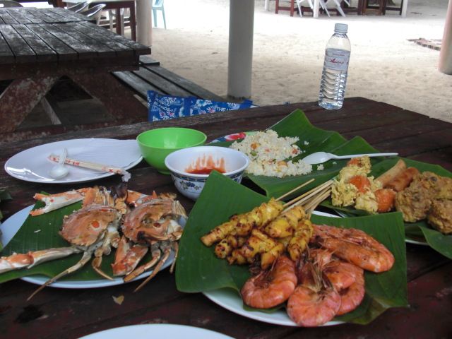 最後の食事&ビーチスイミングの島では,サル退治?にはまってしまった兄たちの安全をそれとなくガイドさんも見てくれており、森に踏み入ろうとすると声を掛けてくれていたりしました。両親は食事中だったのですが,サービスの質の高さに感心すると同時に,飲み放題の冷えたビールを味わいつつ,安心して食事を楽しむことができました。釣った魚も早速塩焼きにしてくれ,昼食に食べました。