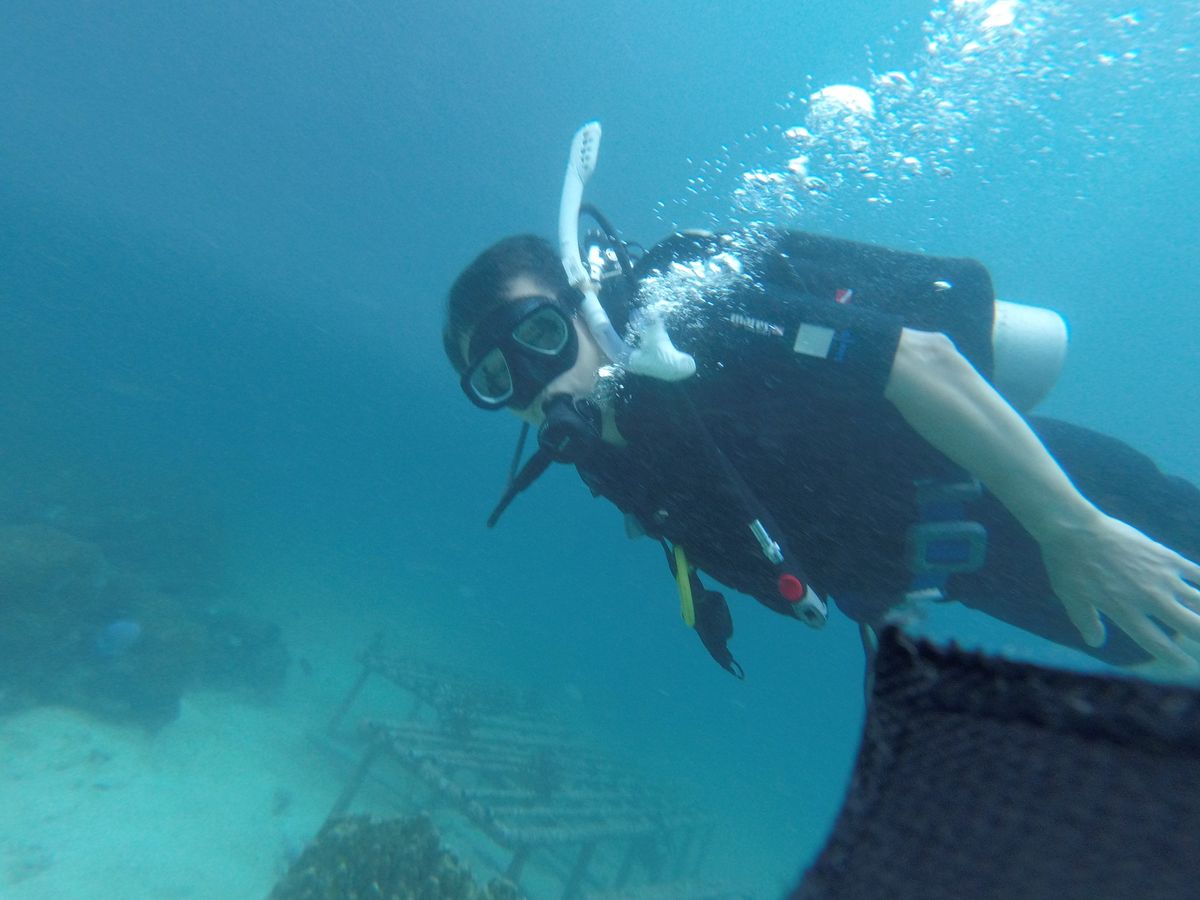 と酸素ノズルに空気が入った際、呼吸の仕方などをざっくり教わりさっそくダイブ。完全にインストラクターさんに抱っこしてもらって海を巡る赤ちゃんダイビングでした笑 でも信じられないくらいの数の魚が海の中にいてびっくりでした。非常に興奮したのを覚えてます。貴重な経験でした。ただ、思っていたほどの透明感というのはなかったです。サンゴ礁も死んでいる感じでした。もっと他の海でダイビングしたらどうなんだろうと後に繋がる初ダイビングとなりました。