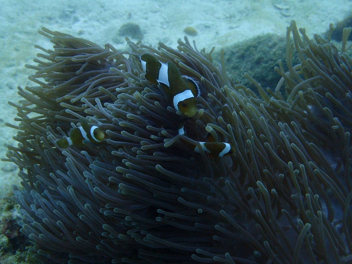 パヤ島の海は上から見る限りだとそこまでキレイには見えなかったのですが.潜るとたくさんの魚が鮮明に見えて.サンゴやカクレクマノミがたくさんいました!