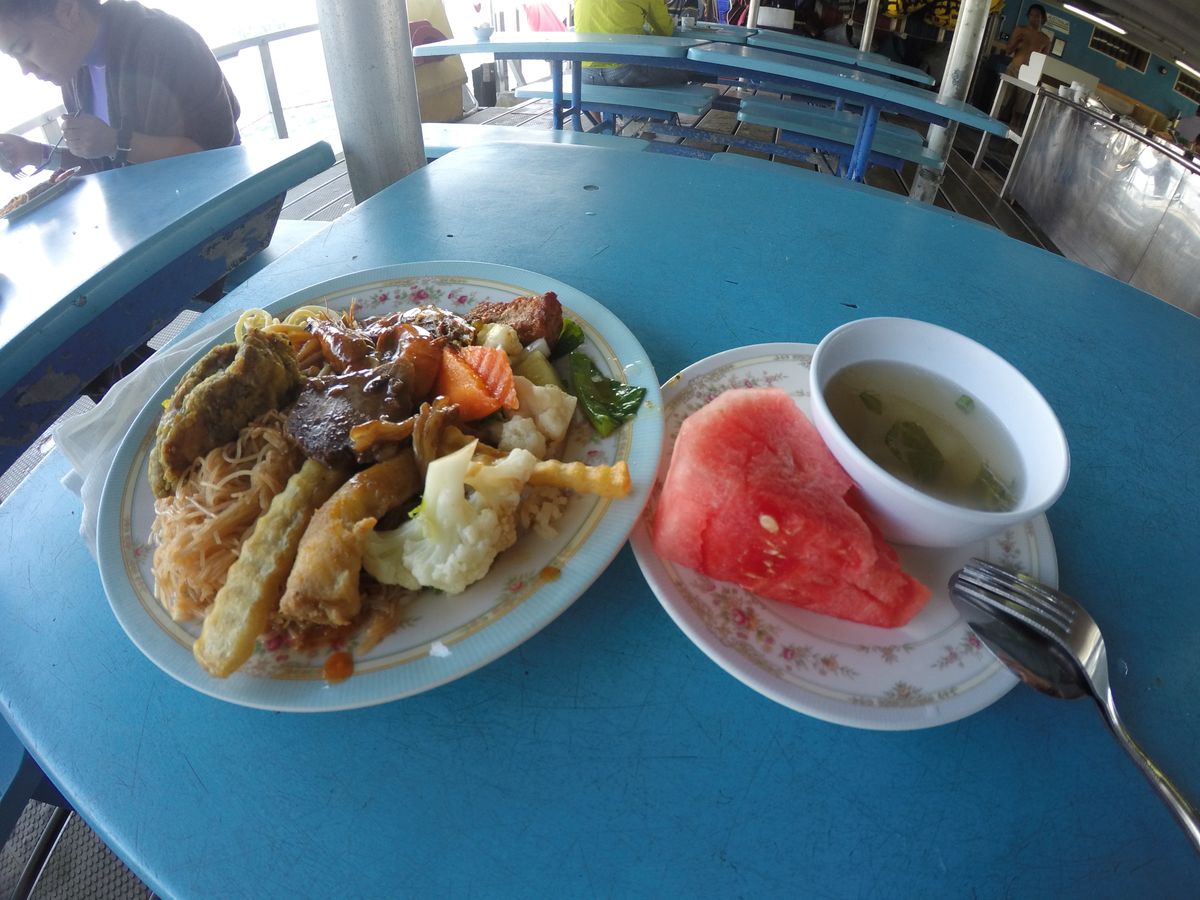 ペナン島から大型船でパヤ島まで行きます。無人島だそうです。この船はランカウイ島に行く人も乗りますが、ムチャクチャにエアコンがきいてて寒いので上着は必須です。
