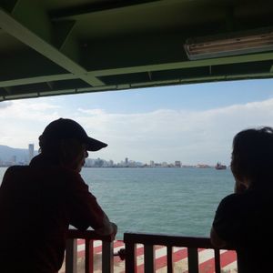 ペナン島からペナンブリッジを車で渡り、車ごとフェリーに乗って海上をペナン島に戻ります。