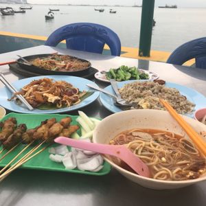 屋台は並ばずで、ガイドさんがおすすめ料理をたくさんテーブルまで運んでくれて、席も海沿いを確保してくれました。
