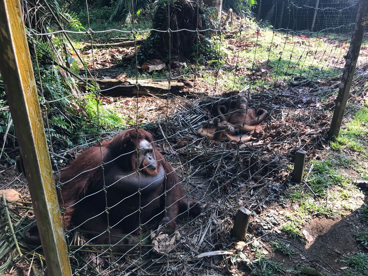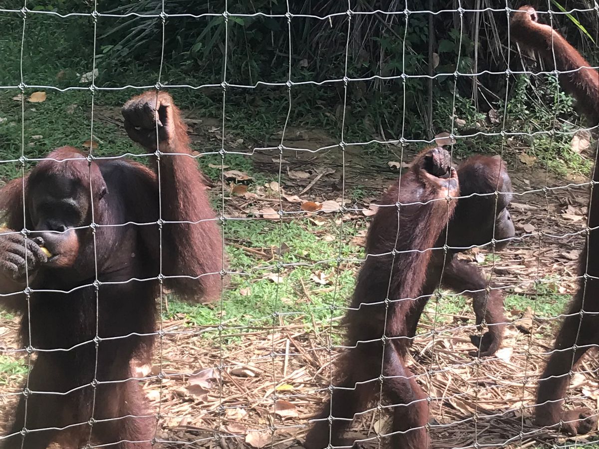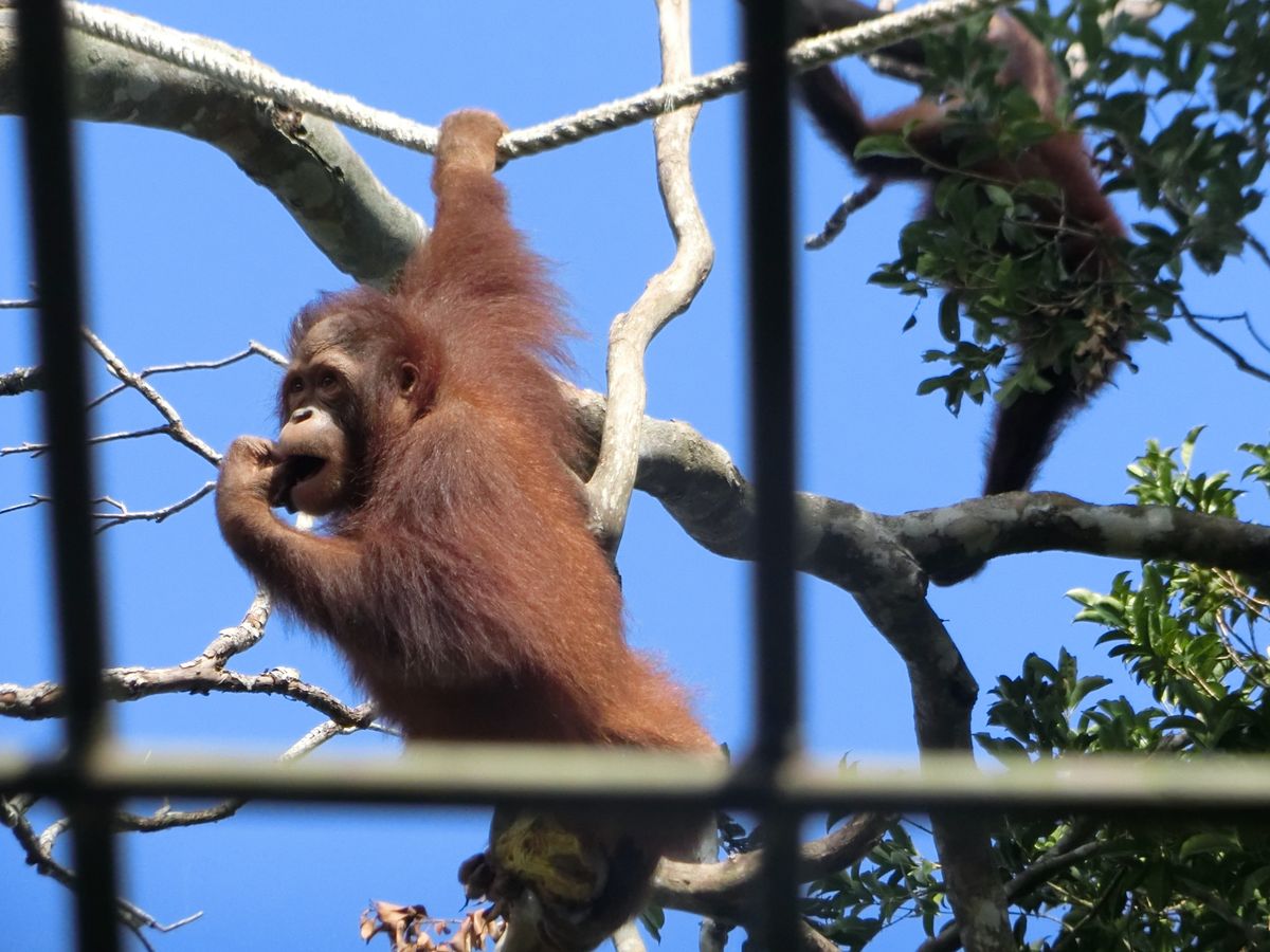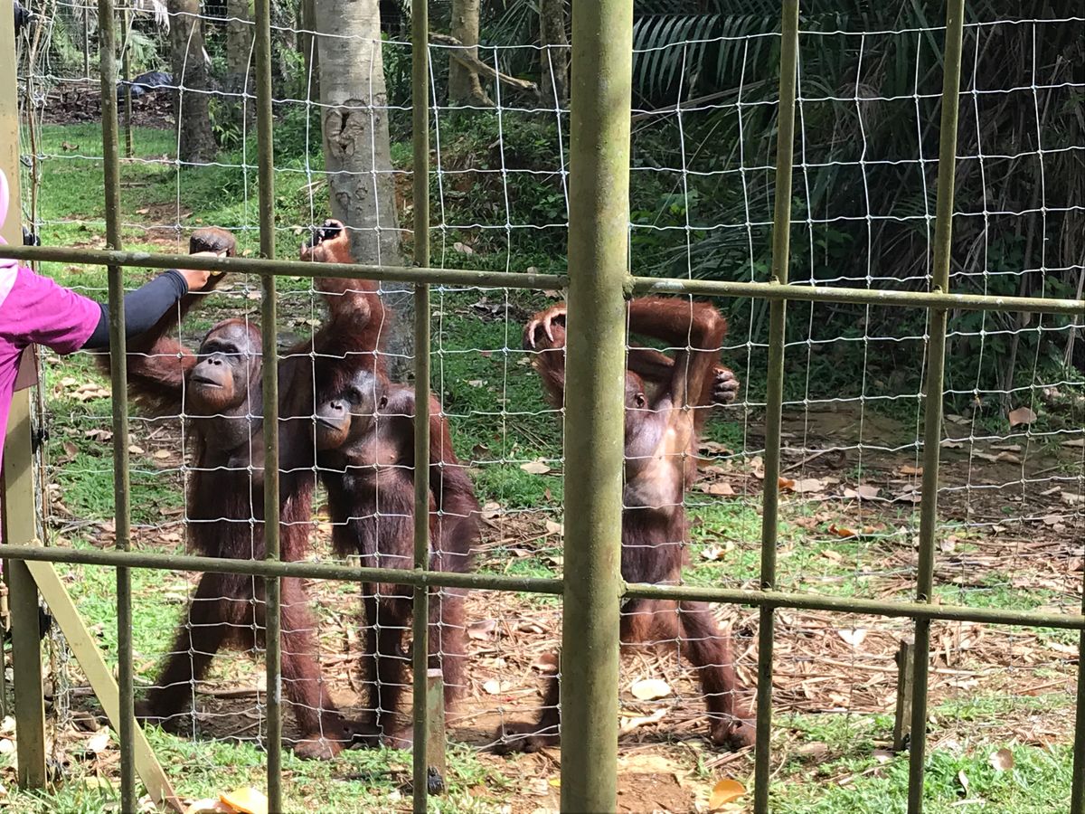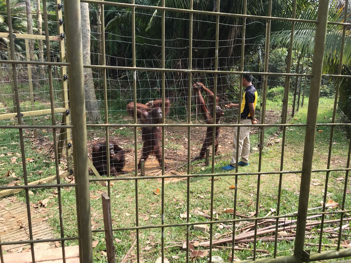 飼育員さんがさつまいもを持っていて、見学者が近くに行くとあげて良く見えるようにしてくれたので、たくさんのオラウータンを近くで見ることができました。ガイドさんは日本語が上手で、動物達の説明も慣れていました。すぐ隣にあるエコパークは以前はいたけど、今はいまないという動物が何匹かいました。閑散とした感じでした。昼ご飯のナシゴレンはおいしかったです。