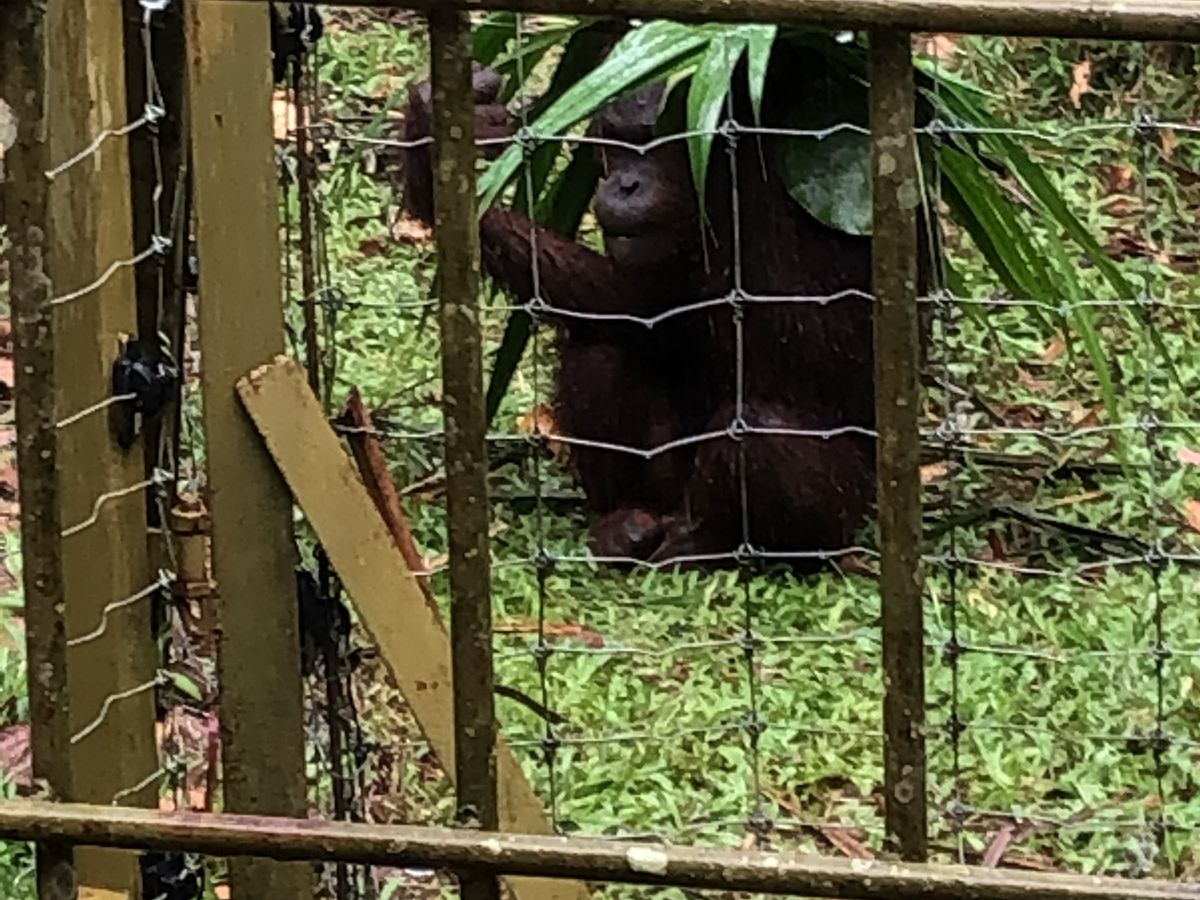 オランウータンサンクチュアリは下りの中に我々がいてオランウータンに観察されている状態。とても良い経験でした。