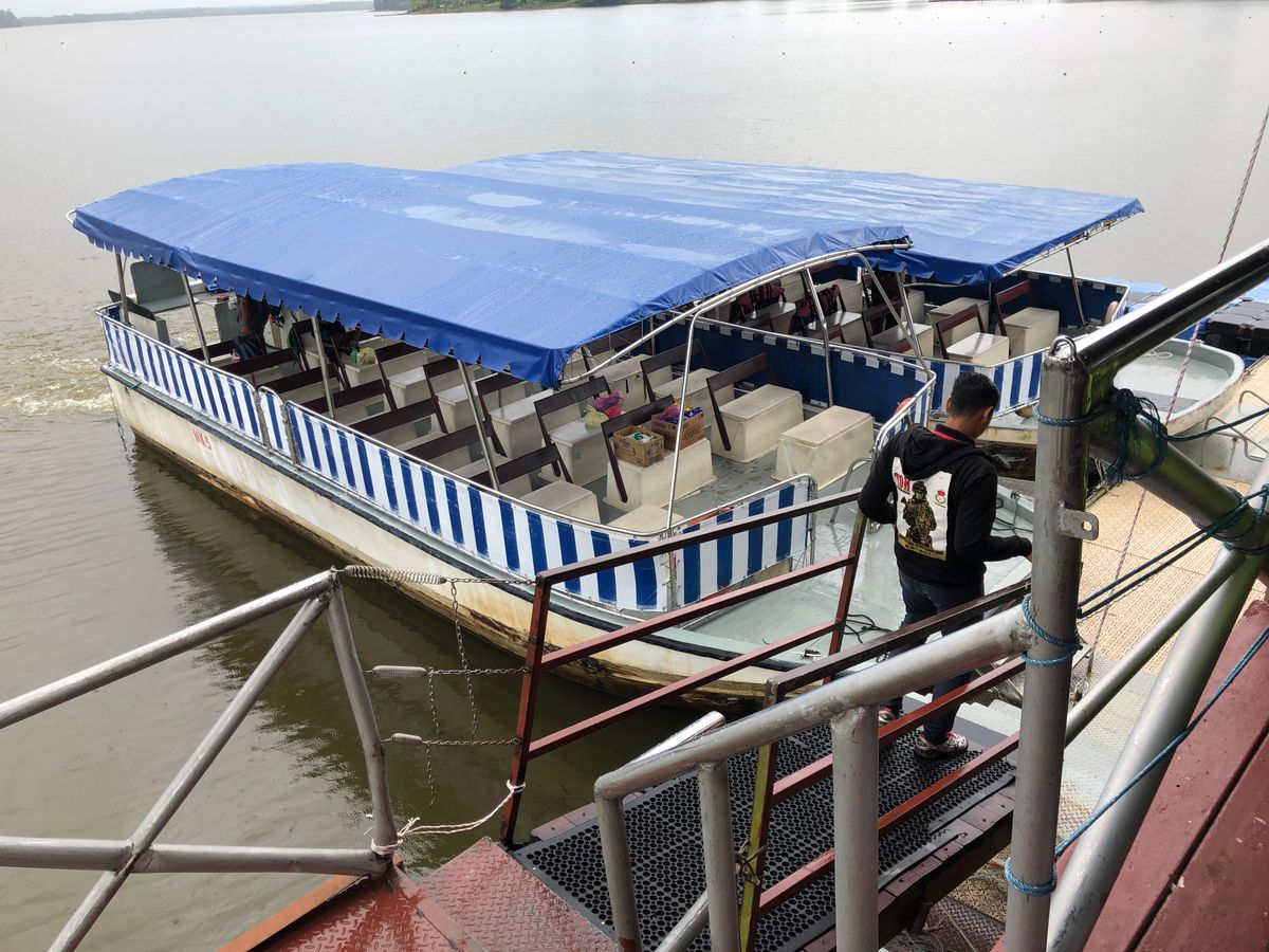 ボートに乗ってオラウータンのいるオラウータン園?へ!