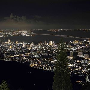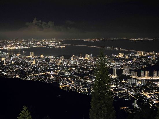 本来の行程では。コムター68階のスカーウォ-クから夜景を見る予定でしたが、臨時休業のため、予定を変更して車でペナンヒルへ向かいました。ケーブルカーに乗って山頂へ到着すると、そのには素晴らしい夜景が待っていました。過去に見た日本の函館や神戸の夜景よりもすっと綺麗で、とても感動しました。