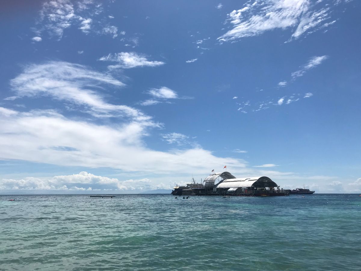 ラッキーなことにボートの上からイルカをみましたし、極稀にジンベイザメも出ると写真を見せてくれました。透明度はどこまでもクリアというより栄養豊かな感じです。