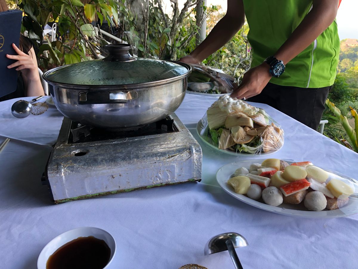 その後そこから5分程度のペナンヒルに向かいロープウェイに乗りました。山頂でスチームボードを食べます。海鮮や鶏肉の鍋です。普通に美味しいです。ビールを飲んだのですが、山頂価格で高かった!