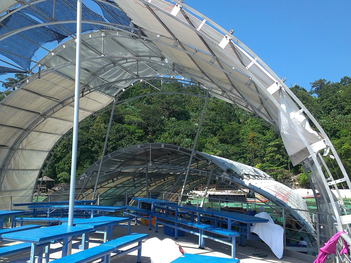 行き帰りの船の中は、冷房がかなり強いので厚めの防寒着をお持ちになることをお勧めします。現地スタッフの中にはダウンジャケットを着ている人もいるくらいです!