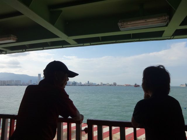 ペナン島からペナンブリッジを車で渡り、車ごとフェリーに乗って海上をペナン島に戻ります。