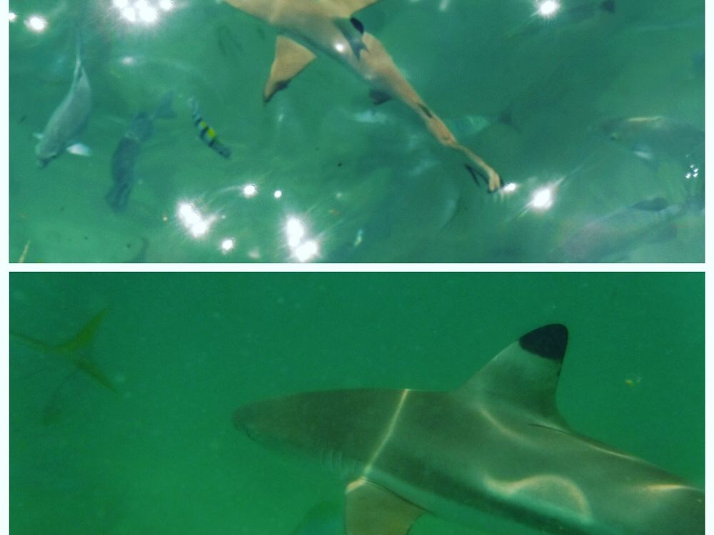 小さなサメが浅瀬にいて、すぐそばをシュノーケルするのもすごいです。
