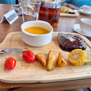 ゲル風の場所とリゾートホテル風の場所の2つあり、その日によって昼食がどちらかになるとのこと。私が行ったときはホテル風の場所で牛肉やモンゴルのチーズ、デザートなどが出てきました。雰囲気も味わったことのない空間、とてもきれいな場所で美味しいごはんが食べられました。