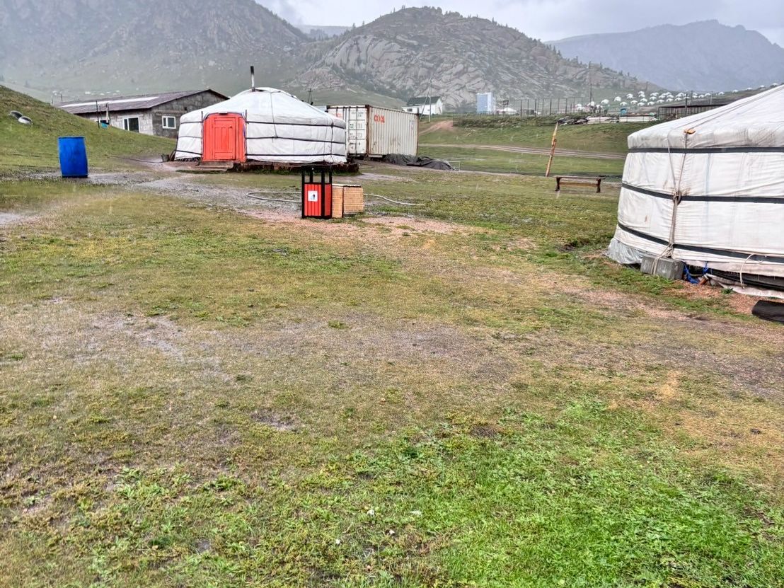 昼からの乗馬体験は大雨のため中止に、その付近でゲル訪問をしました。