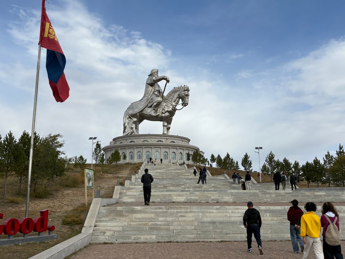 チンギスハーン騎馬像はモンゴルの広い草原の中にどでかい像があり、顔の近くまで上ることができました。モンゴルの草原を見渡すことができ、写真では表せない凄さを感じました。
