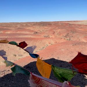 翌日は、バヤンザグ。大きな赤土の丘を観光。丘の上から見る景色は、地平線まで何も無い大地が360度広がっていました。