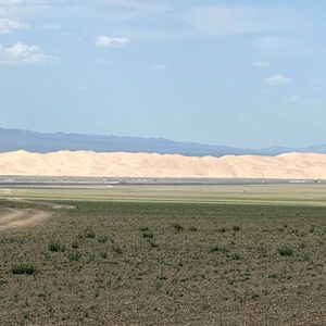 朝一のフライトで、南ゴビのダランザドガドに到着、そこから車でひたすら道なき道を走り、ホンゴル砂丘へ。ウランバートルはとても涼しく秋の装いでしたが、当日の南ゴビの昼間は暑く、30度ちょっと超えるぐらいで、モンゴルは涼しいと想定していたので、暑さにくらっと来ました。