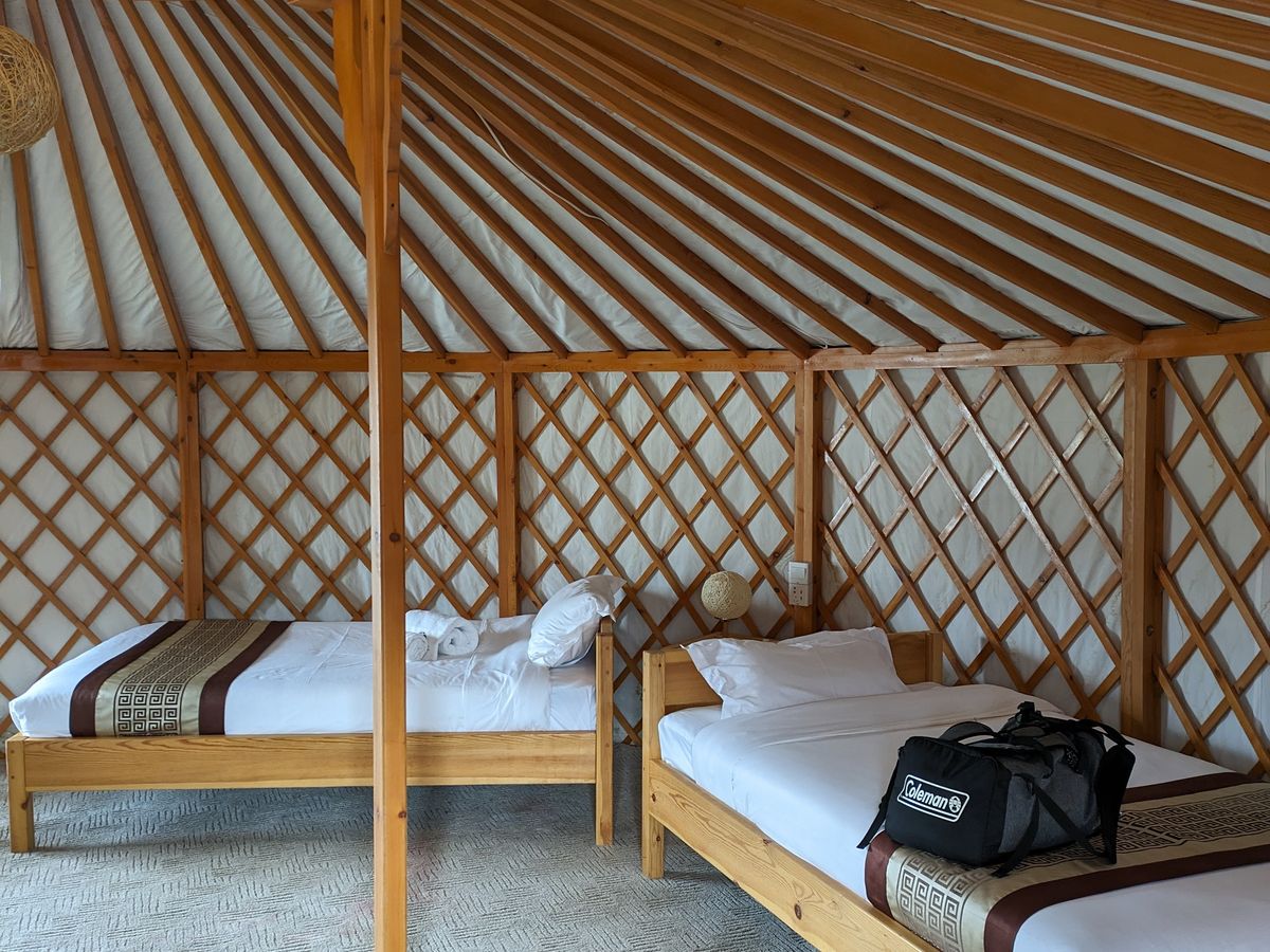 宿泊したゲルもとてもきれいでご飯もおいしく、とても充実した2日間となりました。携帯やカメラの充電ができるのか心配していたのですが、何の問題もなく、変換プラグも使わずに充電することができました。
