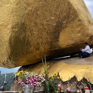 聖地ゴールデンロック日帰り観光ツアーに参加しました。雨季に参加した為、天気は、不安でしたが快晴と運にも恵まれました。乾季は、逆に凄く混んでゆつくり見学できないそうです。ガイドさんは、日本語に達者で説明もとても分りやすかったです。朝早起きしなくては、いけませんがとてもいいツアーです。雨季に行かれる方は、雨合羽は必須です。