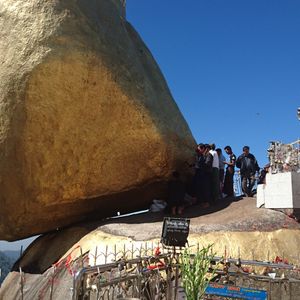 岩を見ることもですが、現地のガイドさんだからこそ聞くことのできる色々な話を聞けて良かったです。トラック(バスか…)は満員にならないと出ません。トラックに乗るのも降りるのも、もたもたしていると…はじき出されそうな勢いもなかなか楽しめます。ミャンマーで初めてのリフトが出来ていて、ミャンマー人にとってはそれほど高くありません。乗りたかったですが…往きでないと… 帰りだと、またトラックが一杯になるのを待ってしか出発しないので無理でした。残念