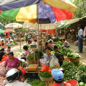 ヤンゴンからの日帰りは朝の出発が早く、なかなかのハードスケジュールですが、世界3大仏教遺跡の名に違わず素晴らしかったです。広大な敷地に広がる仏塔はスケールが大きすぎて、写真に納まらないのが残念。マーケットには地元の女性が多く、ミャンマー独特の化粧も見られます。