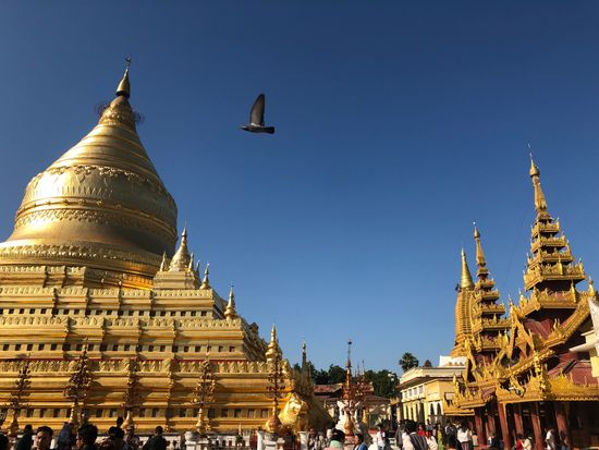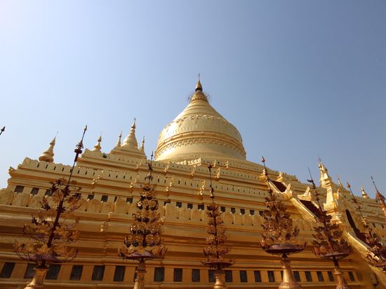 シュエジーゴン・バゴダは、それはそれは金色の塔が青空と相まって、なんとも美しく、神々しいことか。