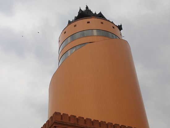 ツアーとは別に空港近くのビューイング・タワーに立ち寄り、夕陽とバガンを俯瞰(5ドル)