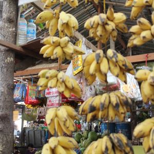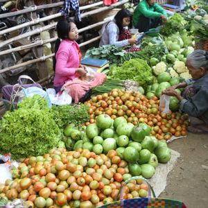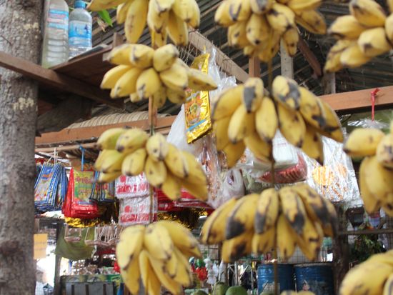 次に、ニャンウー市場に行ったが、狭い通路の両脇に色んな露店が続き、屋根付きの店舗もあり、騒然としてまさにごった返してる感じ。この地方には電気がなく、勿論、冷蔵庫もないので、市場にその日の食材や生活用品を各地からトラックに乗り合わせたりして、買いに来る。買い物する人、商売する人、荷物を運ぶ人の活気に押されまくった。