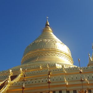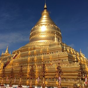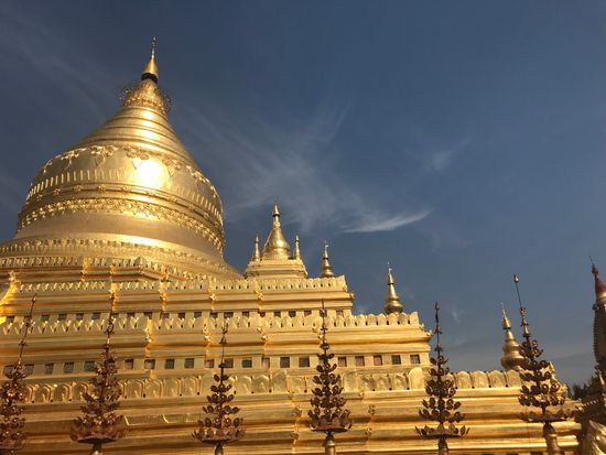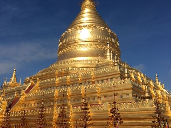私的には金色に輝くシュエダバゴンよりバガンの赤茶けた仏塔や鮮やかな白色をした寺院に心惹かれました。派手さはないが、広大な大地にヤシと仏塔だけが点在していて仏教建築の美しさ幻想的な光景に暑い中での観光だったのですが、時が経つのも忘れてしまう程素晴らしかったです。川沿いのレストランでの昼食,又ガイドさんの人柄の良さ、日本語での説明の上手さ。