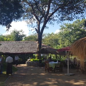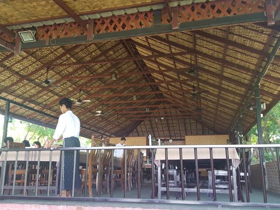 エーヤワディー川沿いにあるサンセットガーデンでの昼食はエアコンがなくオープンエアーでの昼食となりますが、